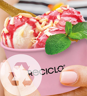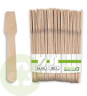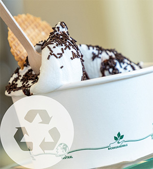 - Einsatz von Eisbechern, Eislöffeln & Servietten aus zertifiziert nachhaltiger Forstwirtschaft, biologisch abbaubar nach EN 13432 ODER