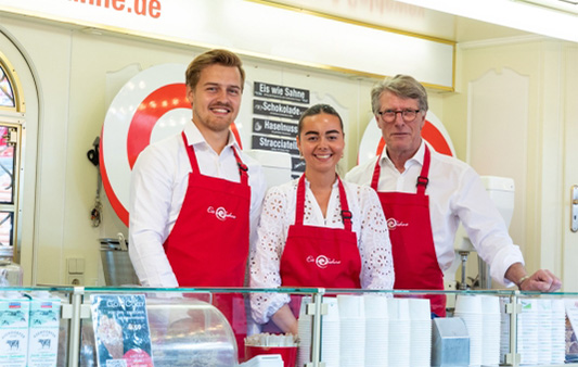 Guter Service bedeutet für uns, dass Sie sich rundum wohlfühlen und mit einem Lächeln Ihr Eis genießen. Unser Team steht mit Begeisterung hinter dem Verkauf und freut sich, Ihnen eine angenehme Zeit zu bereiten.